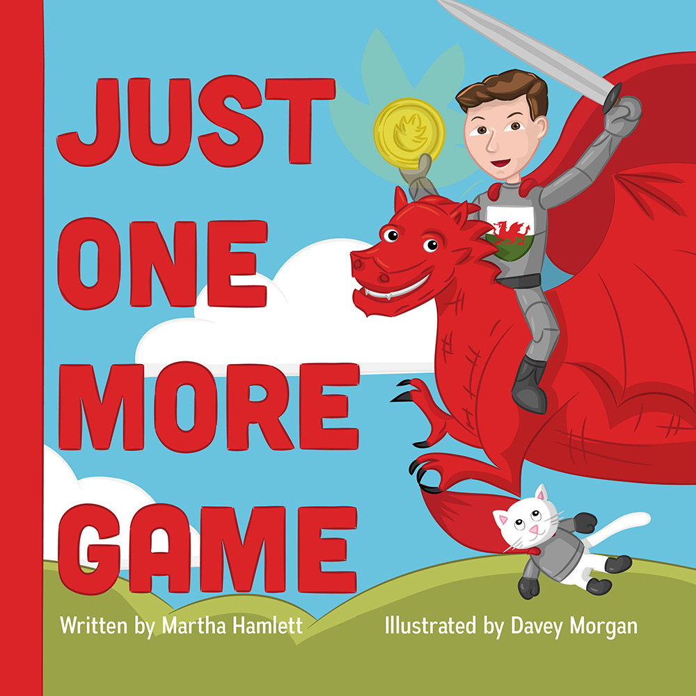 "Just One More Game" is about a young boy who is so obsessed with playing video games that he does not want to go outside to play or even eat dinner. His parents, sister, and friends all get upset with him, but he is determined to beat the Black Knight and win a spot in the Video Game Hall of Fame. He is cheered on by a wonderful cast of characters such as the family pets.